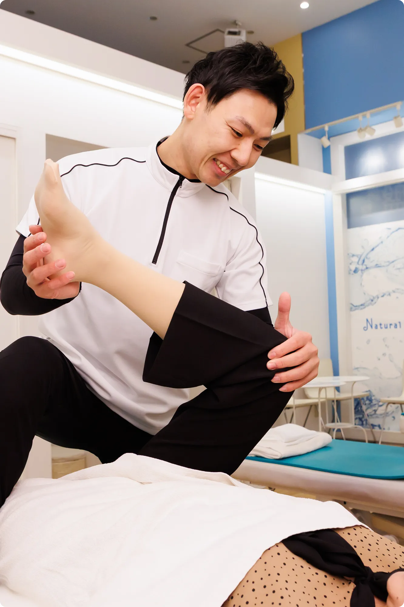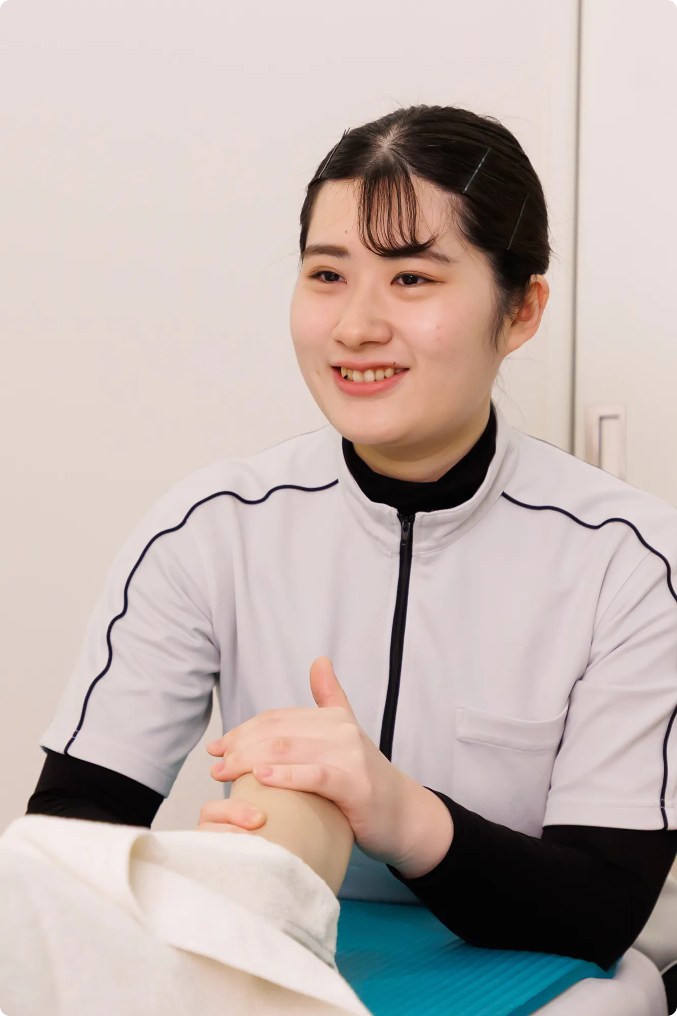 一人ひとり違う身体のお悩みによりそって、感謝されるこの仕事は、ずっとスポーツをやってきて、身体を動かすことが好きな自分にピッタリの仕事だと思っています。