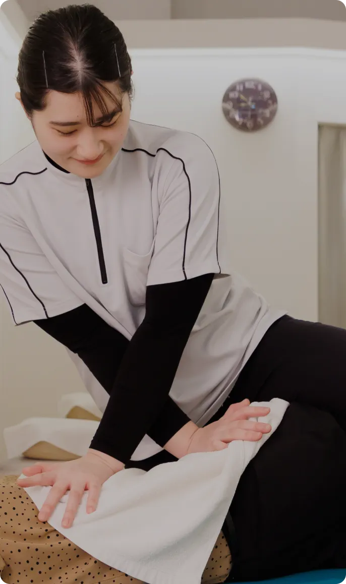 一人ひとり違う身体のお悩みによりそって、感謝されるこの仕事は、ずっとスポーツをやってきて、身体を動かすことが好きな自分にピッタリの仕事だと思っています。